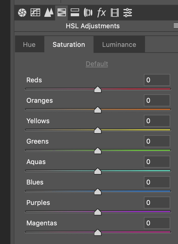In Camera Raw, you’ll have a tab called HSL adjustments. Open that tab and you’ll see color bars.